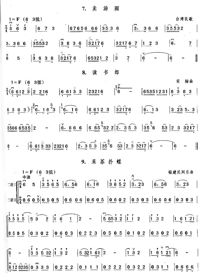 《卖汤圆.读书郎.采茶扑蝶.康定情.敖包相会》二胡谱 未知