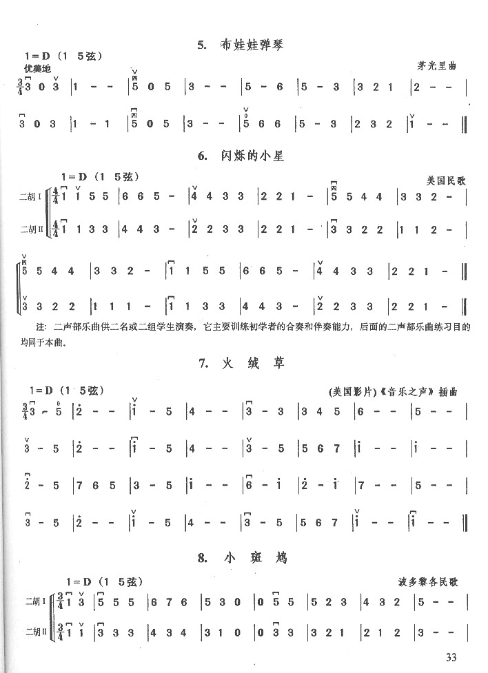 《布娃弹琴.闪烁的小星.火绒草.小斑鸠.》二胡谱 未知