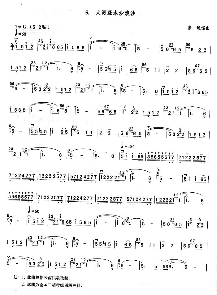 《大河涨水沙浪沙》二胡谱 未知
