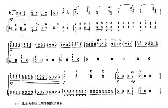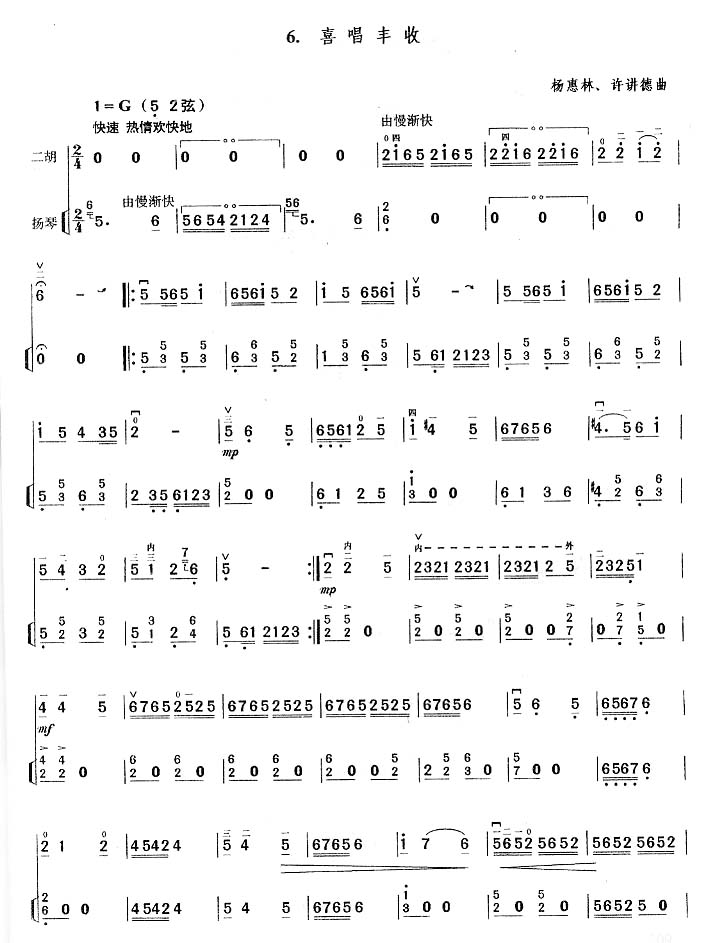 《喜唱丰收》二胡谱 未知