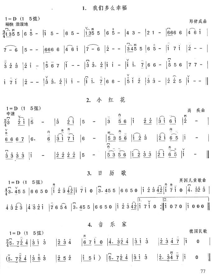 《我们多么幸福.小红花.日历歌.音乐家》二胡谱 未知