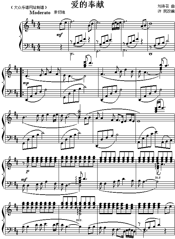 《爱的奉献》钢琴谱 韦唯