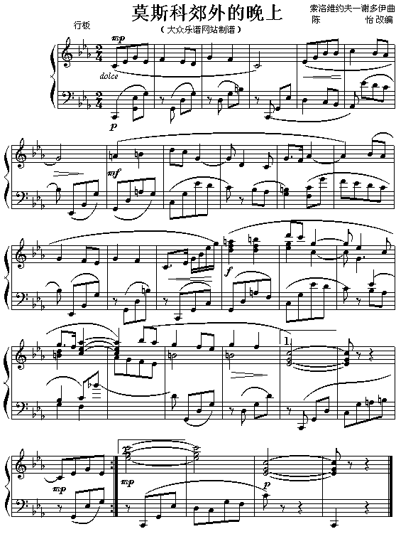 《莫斯科郊外的晚上(俄罗斯民歌)》钢琴谱
