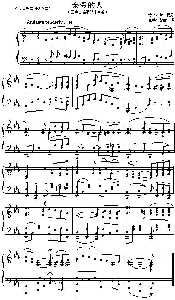 《亲爱的人(爱尔兰民歌)》钢琴谱