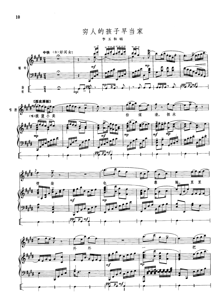 - 李玉和唱段 | 穷人的孩子早当家钢琴谱