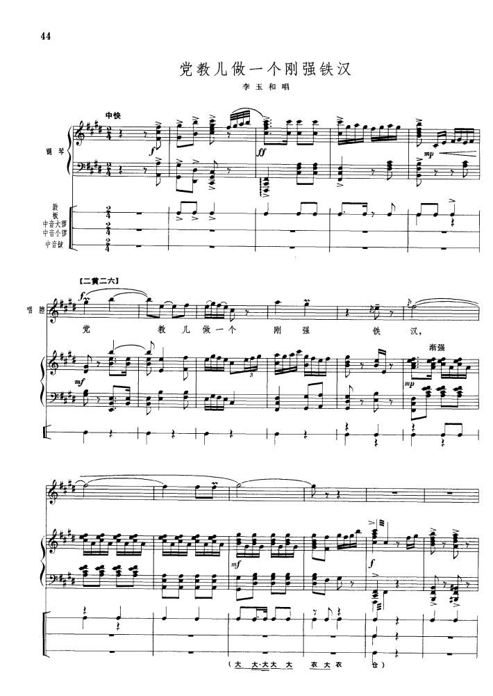《党教儿做一个刚强铁汉(钢琴伴唱)》钢琴谱 钱浩梁