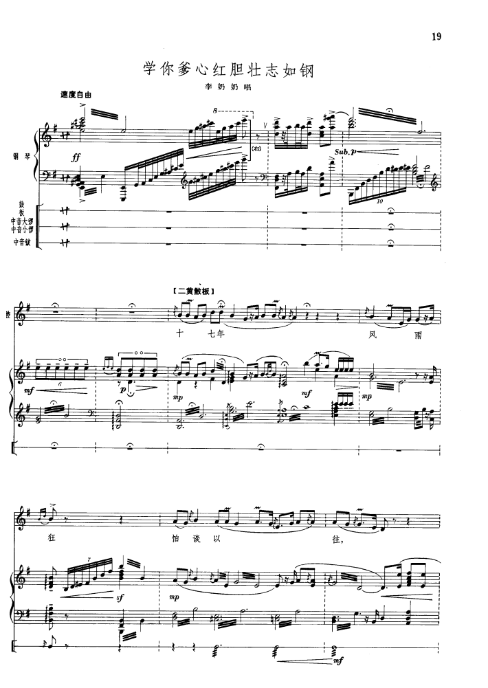 《学你爹心红胆壮志如钢(钢琴伴唱)》钢琴谱 高玉倩