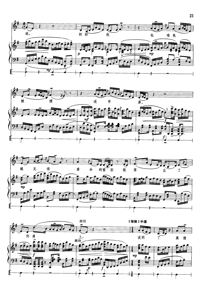 钢琴伴唱《红灯记》(13首)(51-70)钢琴谱
