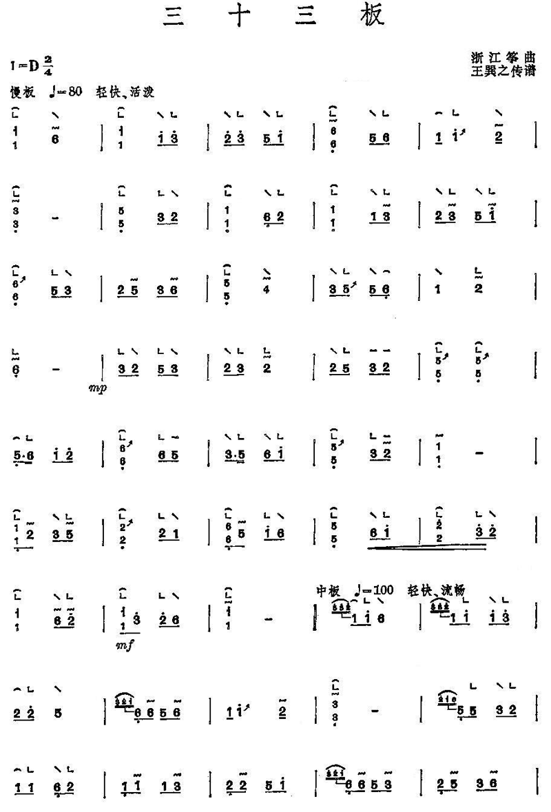 《三十三板》古筝谱 未知