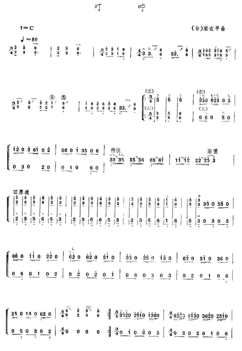 《叮咛》古筝谱 未知