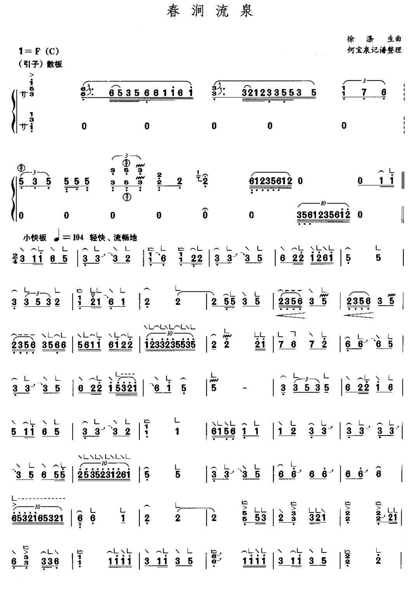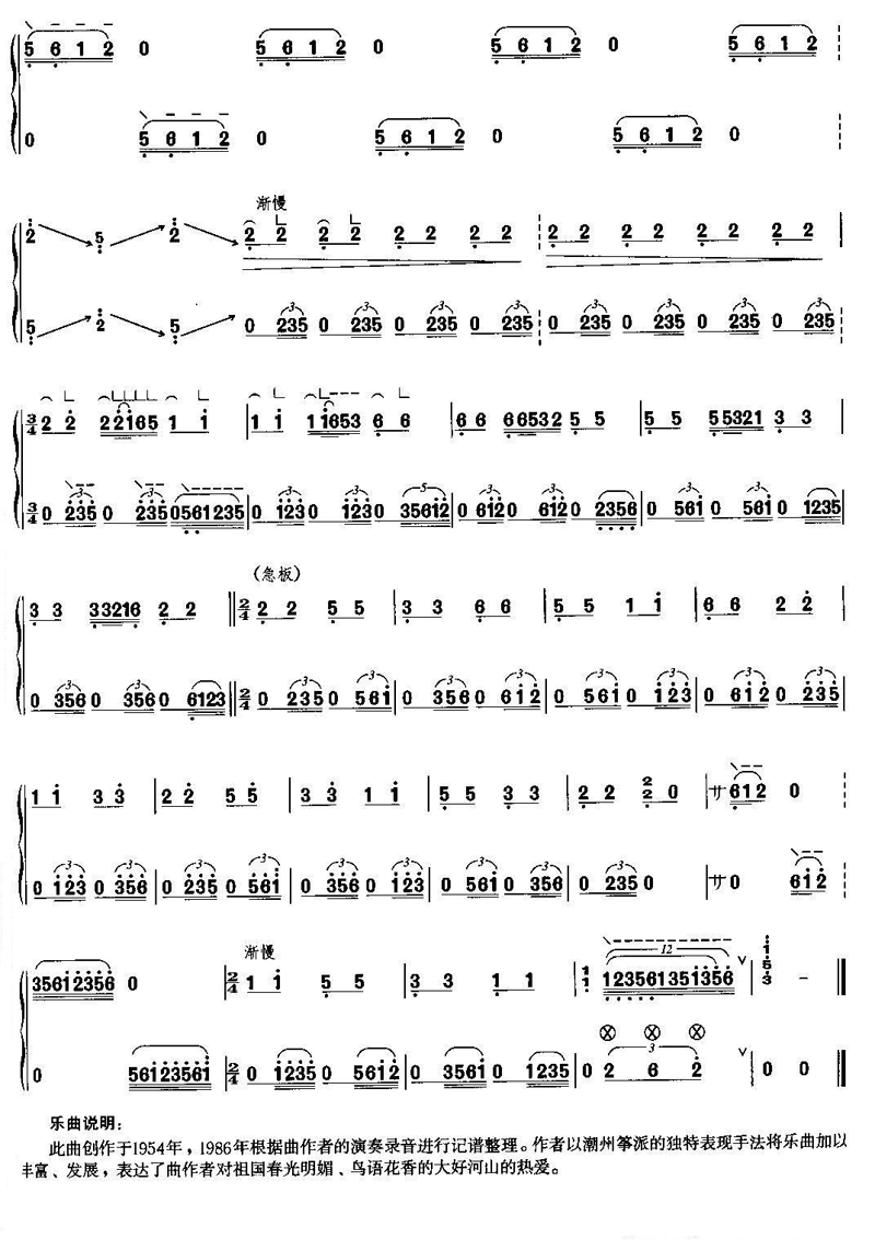 《春涧流泉》古筝谱 未知