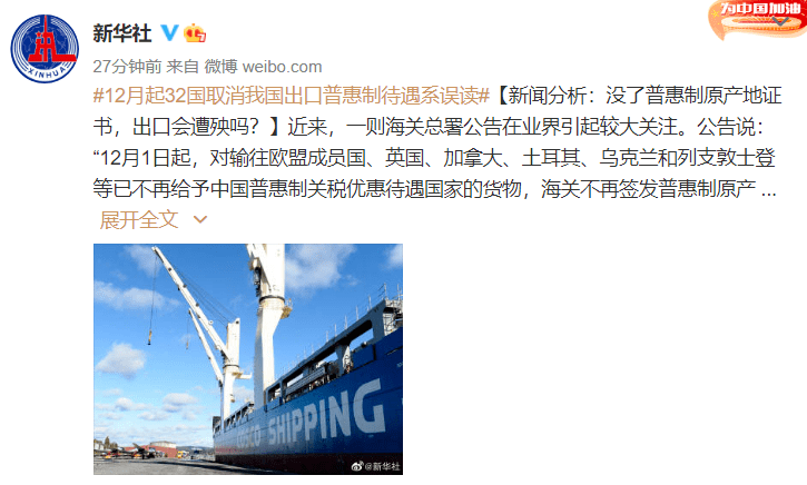 188金宝搏官网登录app:“12月起32国取消我国出口普惠制待遇”系误读