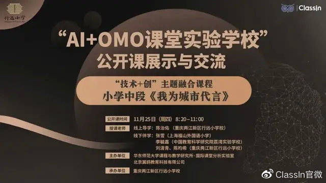 11月25日上午,由华东师范大学课程与教学研究所国际课堂分析实验室和北京翼鸥教育科技有限公司主办,重庆两江新区行远小学校承办的“AI+OMO课堂实验校”公开课展示与交流活动圆满举行。