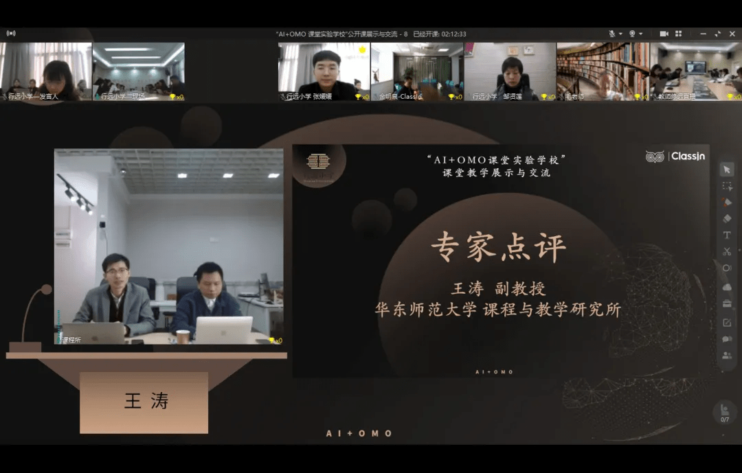 关于OMO融合课程的分享,华东师范大学课程与教学研究所王涛副教授,肯定了行远小学校结合时代发展和教学创新需要,所进行的一系列探索和取得的收获。对于这种新的线上线下融合的教学模式,表示感到惊艳和惊喜。三校联动跨年级、跨地区、上新课程,让我们深刻感受到了技术给我们带来的教学升级。