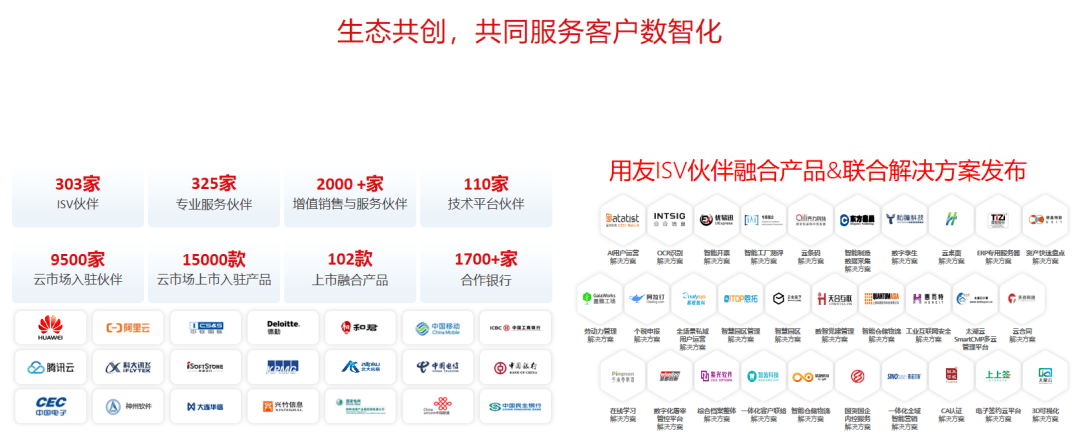 目前,用友BIP生态已汇聚ISV伙伴300余家,专业服务伙伴325家,增值销售和服务伙伴2000余家,技术平台伙伴110家。用友BIP云市场入驻伙伴超过9500家,入驻产品超过15000款,其中10千亿国际qy88vip下载2款产品与用友核心产品高度融合,已上市并面向客户提供服务。用友BIP还与超过1700家银企开展生态合作。