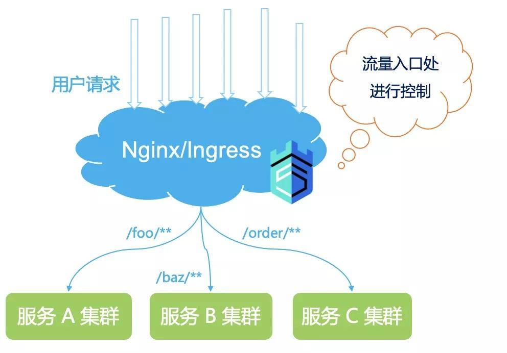场景:在 Nginx/Ingress 网关、API Gateway (Spring Cloud Gateway, Zuul) 进行入口流量控制,希望精确控制某个或某组 API 的流量来起到提前保护作用,多余流量不会打到后端系统。