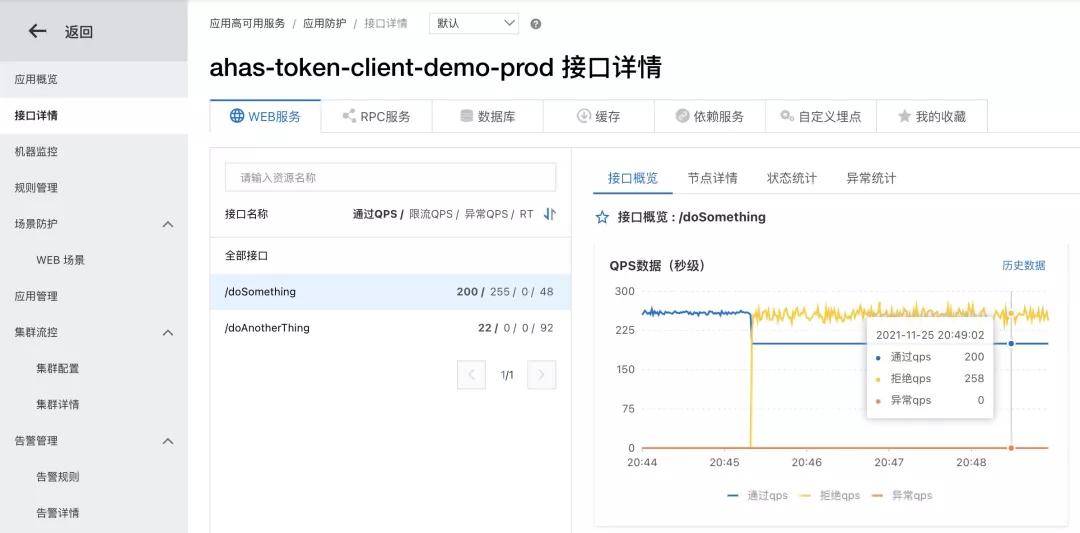 配置完毕后,我们可以向应用集群中不同机器发起一定数量的该接口请求,可以发现每秒钟超过 200 个请jxf手机登录入口求后会自动返回jxf手机登录入口我们在规则中预设好的返回行为;同时控制台实时监控页面也可以看到,多余的流量被拒绝,接口每秒钟通过的总量级平稳在 200 QPS: