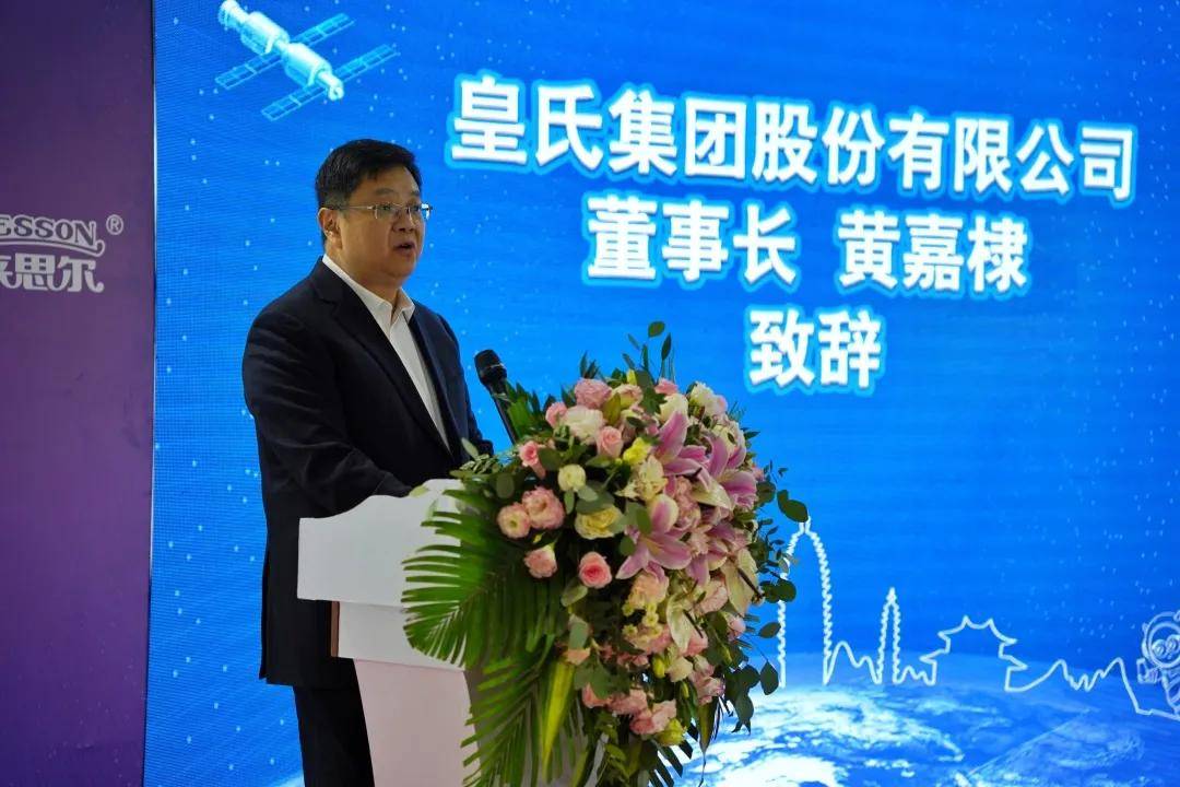 航天菌种交接仪式正式开始前,皇氏集团股份有限公司董事长黄嘉棣上台对本次到场嘉宾进行了欢迎致辞。黄董郑重表态,“我们将举全公司之力,调集优势资源,借助集团的技术平台,全力以赴开展搭载返回菌株的后续研究,力争以最快的速度、最高的效率筛选出罕见突变菌株,开发真正具有核心技术优势的‘中国芯’优良乳制品,引领企业实现转型升级和跨越发展,为大理州乳业的高质量发展和打造世界一流的云南高原特色‘绿色食品牌’作不懈努力。”