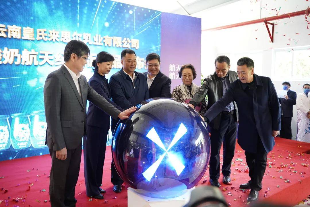 授牌仪式结束后,云南皇氏来思尔“小酸奶航天纪念版产品”在云南省科技厅、大理州人民政府、云南省太空生物科技发展促进会、大理国家级经济技术开发区管委会、皇氏集团主要领导,以及云南皇氏来思尔乳业有限公司员工代表的共同见证下进行了发布。