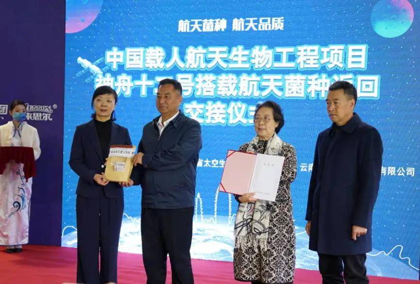 随后,航天菌种鲜活菌被送返云南,经过一系列技术处理后,于12月1日正式回到大理。在大理举行“中国载人航天生物工程项目神舟十二号搭载航天菌种返回交接仪式”。