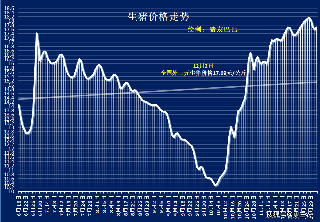 进入12月,猪价连跌的势头,在养殖户压栏惜售的抵触下,猪价终于止跌上涨,12月2日,国内生猪价格涨至17.69元/公斤,猪价窄幅反弹0.1元/公斤!但是,养殖户仍不开心,只因他们面临3大挑战,涉及国内多数猪场,那么,到底是怎么回事呢?今天我们就具体分析一下!
