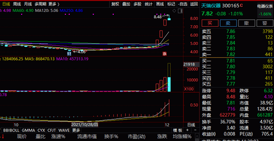 值得注意的是,今天上午,天瑞仪器未再继续“20厘米”涨停,截至澳门十大电子游戏网站推荐上午收盘,下跌1.01%。