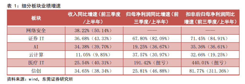 东莞证券指出了明年计算机行业4大细分方向的机会:云计算中长期看SaaS渗透率提升、短期看上游服务器复苏,关注浪潮信息、宝信软件、广联达、金山办公、用友网络等。人工智能赋能企业降本增效,自动驾驶、教育等场景不断深化,潜在市场巨大,关注科大讯飞、大华股份、海康威视等。证券IT受益资本市场改革红利释放,增量空间可期,关注恒生电子等。网络安全利好政策频出,新兴安全市场需求加大,关注奇安信-U、启明星辰、绿盟科技等。