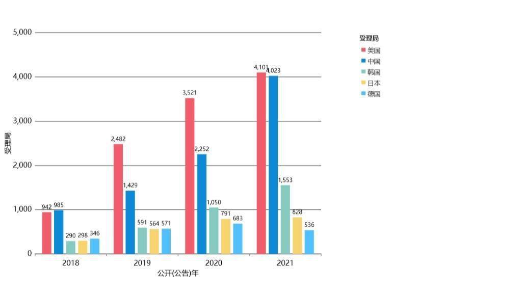 从2018年起,中国已经是数字医疗的专利申请的大国,远远超出第二名的美国,说明中国在数字医疗的研发力量的投入大于美国,并且中国在发明专利授权量上也逐年增加,并于2021年与美国持平,远超第三名,说明数字医疗领域的技术成果的质量较高,已经改变了以往只以量取胜的局面,进入数量和质量共同发展的时期。