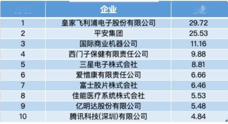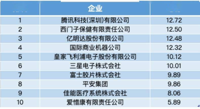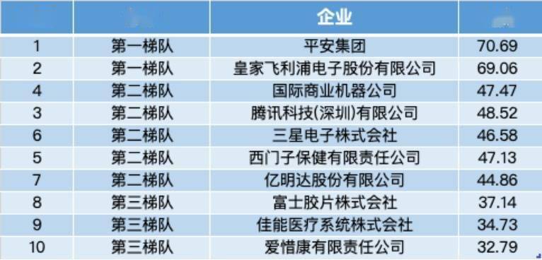 技澳门新葡萄娱乐app下载术宽度和质量是通过专利技术集中度、专利技术广度等8个指标综合计算所得,可了解公司主要技术专利的全球占比和企业技术质量。在过去4年,皇家飞利浦以12.47的得分排名第一,三星电子和国际商业机器排名分别位列第二、第三。从客观条件来看,国外企业大多是有长时间的技术传承,中国企业入局较晚,作为技术后来者一般是以点进行技术突破,而国外的企业会以更加全面的方式进行专利布局,因此国内企业在技术宽度和质量方面落后于国外企业,也是情有可原的,在此指标中平安集团位列第六,腾讯位列第十。