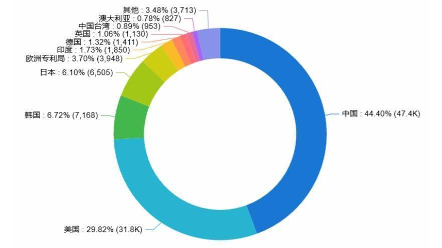 在过去4年中,数字医疗相关发明专利共授权32248件,排名前五的国家分别为美国(11046件)、中国(8689件)、韩国(3484件)、日本(2481件)和德国(2136件)。