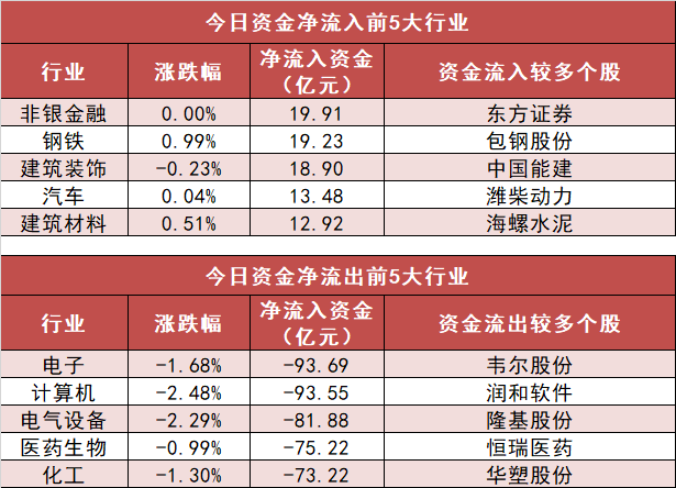 今日沪深两市主力资金开盘净流出84.56亿元,尾盘净流出47.87亿元,两市全天资金净流出382.29亿元。
