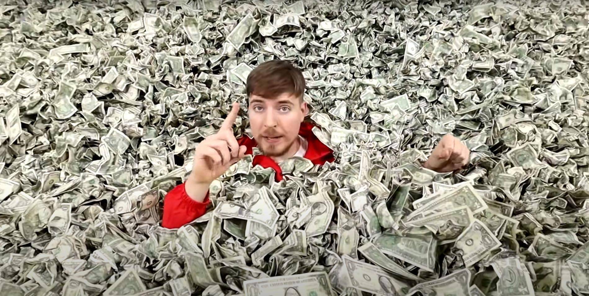 他的视频以「引人注目的噱头」以及「高昂的奖金和制作费用」闻名,经常在视频中赠送大量现金,比如将一百万美元的卡交给陌生人,允许其在 1 分钟限定时间内买东西,买多少算多少。