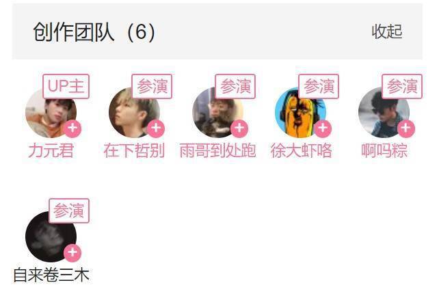 这六位 UP 主分别为啊吗粽、力元君、老坛胡说、福乐小哥、徐大虾咯、在下哲别。他们中的大部分曾入选年度百大 UP 主,粉丝都是百万级别,横跨生活区、游戏区、美食区等等。