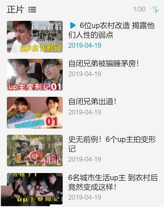 2019 年 4 月,B 站的六名 UP 主联合自制了一档偏向流水账的真人秀节目——《UP 主变形记》。这档节目参照了湖南卫视《变形计》的设定,六位 UP 主到某村庄体验不一样的生活,挑战每人 50 块生存五天,没有任何剧本,以团建日常为主,再加入随机制造的节目效果,有人假意失踪,也有人跑去村民家蹭吃蹭喝。