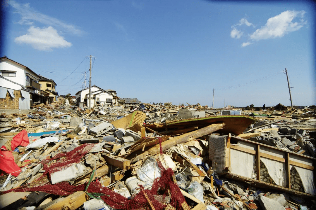 海啸波及了茨城县23平方千米的地面,常陆那珂市一片狼藉。