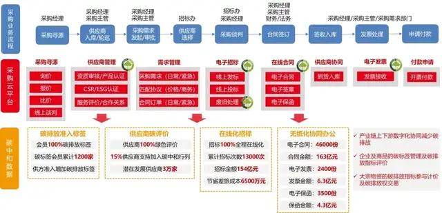 通过采购业务的SaaS化,即可实现自身的采购商务交易活动的无纸化,同时也因为减少了人员出差,间接实现降碳。
