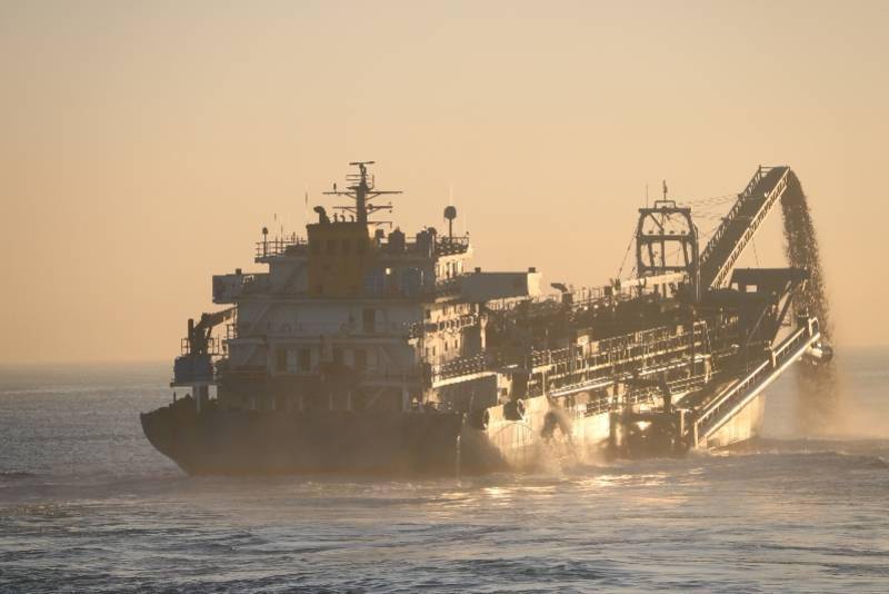 涉案船舶在进行非法采砂作业。新华社资料图
