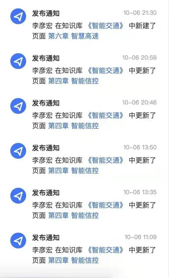 《智能交通》是一本“如流书”,全部在如流知识库上完成,包括写作、编辑、讨论、修订全过程,李彦宏可谓如流资深博主。写作期间,他共更新89次。十一假期期间,更是疯狂“赶作业”,连续7天不断更。