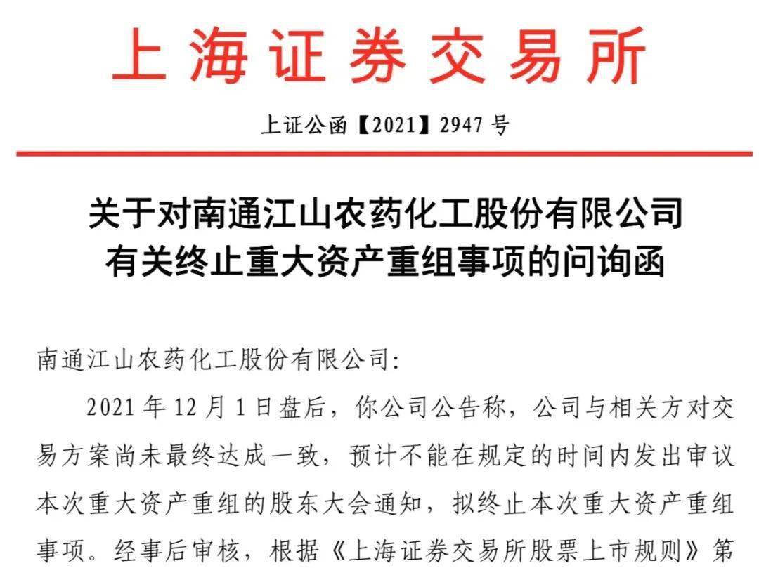 原本要当草甘膦龙头企业,资产重组事宜也从4月份筹划至今,然而,突如其来的一则公告,宣告重组戛然而止,让这家企业股价和投资者的心态一起崩了……