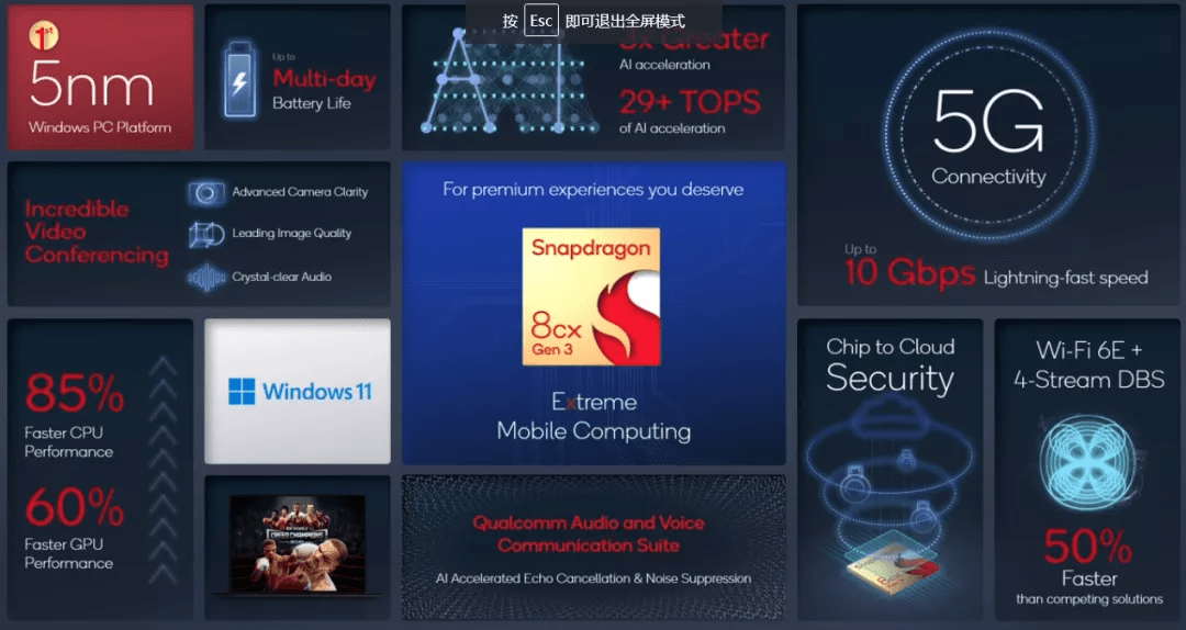 高通推出了第 3 代骁龙 8cx 计算平台,扩展面向始终在线、始终连接的 PC 产品组合,该平台旨在通过顶级的超轻薄、无风扇笔记本电脑,带来用户期待的性能和卓越体验。