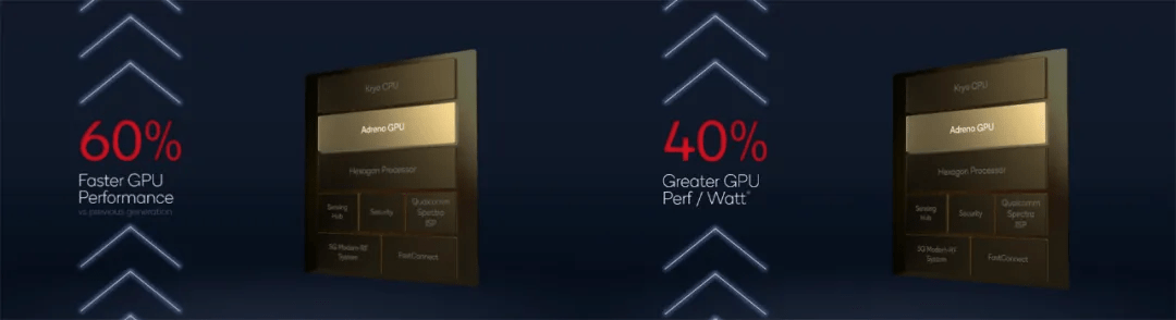 在运行 GPU 高负载任务时,比如网络浏览、视频与照片编辑和视频会议场景,用户将尽享高通 Adreno GPU 的图形和软件体验。8cx 计算平台的 GPU 性能较前代实现高达 60% 的大幅提升和 40% 的每瓦特性能提升。