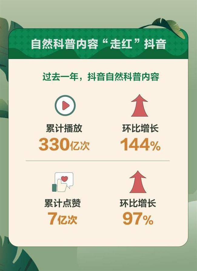 在抖音,这样的科普视频创作者还有很多。报告显示,过去一年抖音自然科普类视频累计播放量达330亿次,环比增长144%;有7亿人次为相关作品点赞,环比增长97%。其中物理科普仅次于动物、植物、地理、化学,位列第五位。