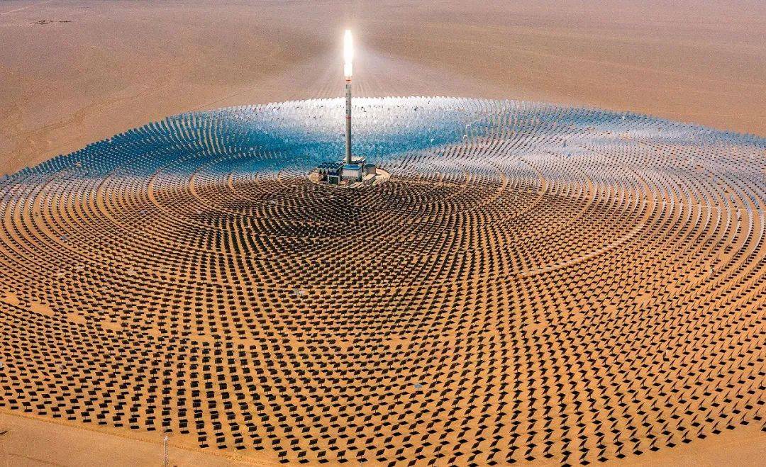 位于甘肃敦煌的首航高科敦煌100兆瓦熔盐塔式光热电站。邱新生摄(中经视觉)