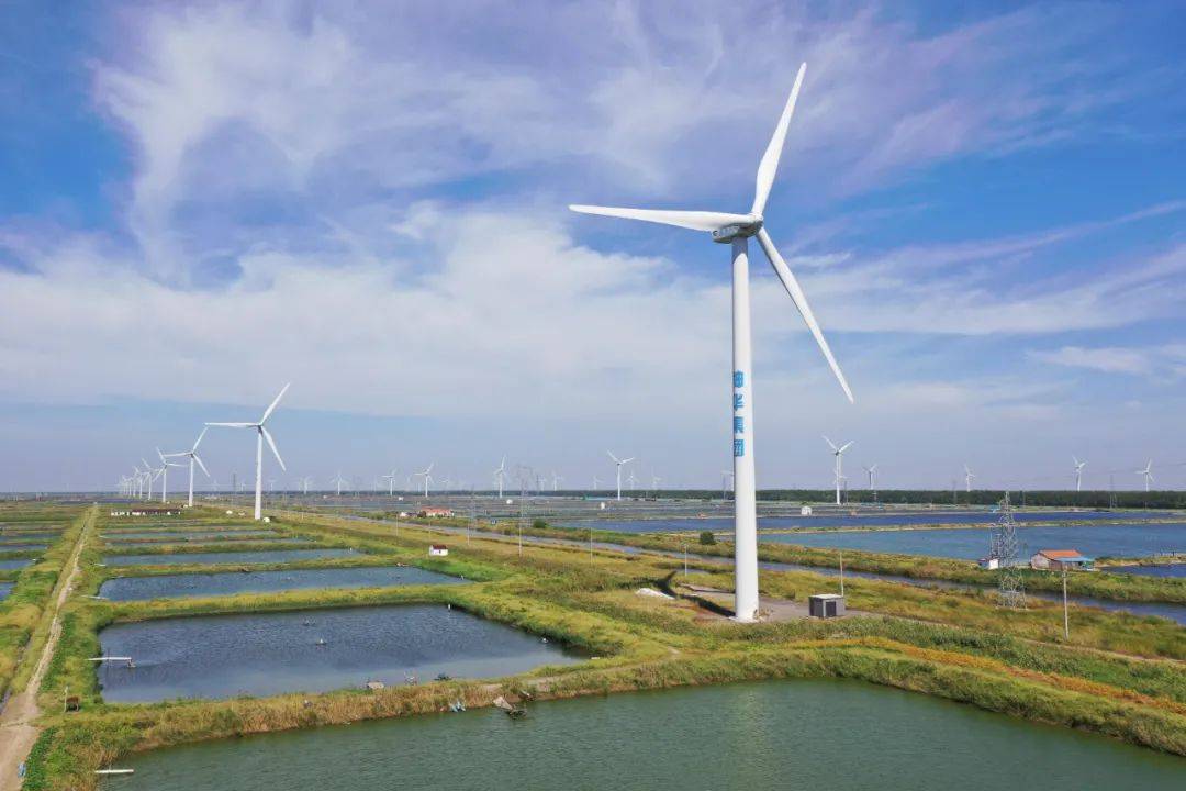 江苏省东台市沿海地区拍摄的风力发电机组。方东旭摄(中经视觉)