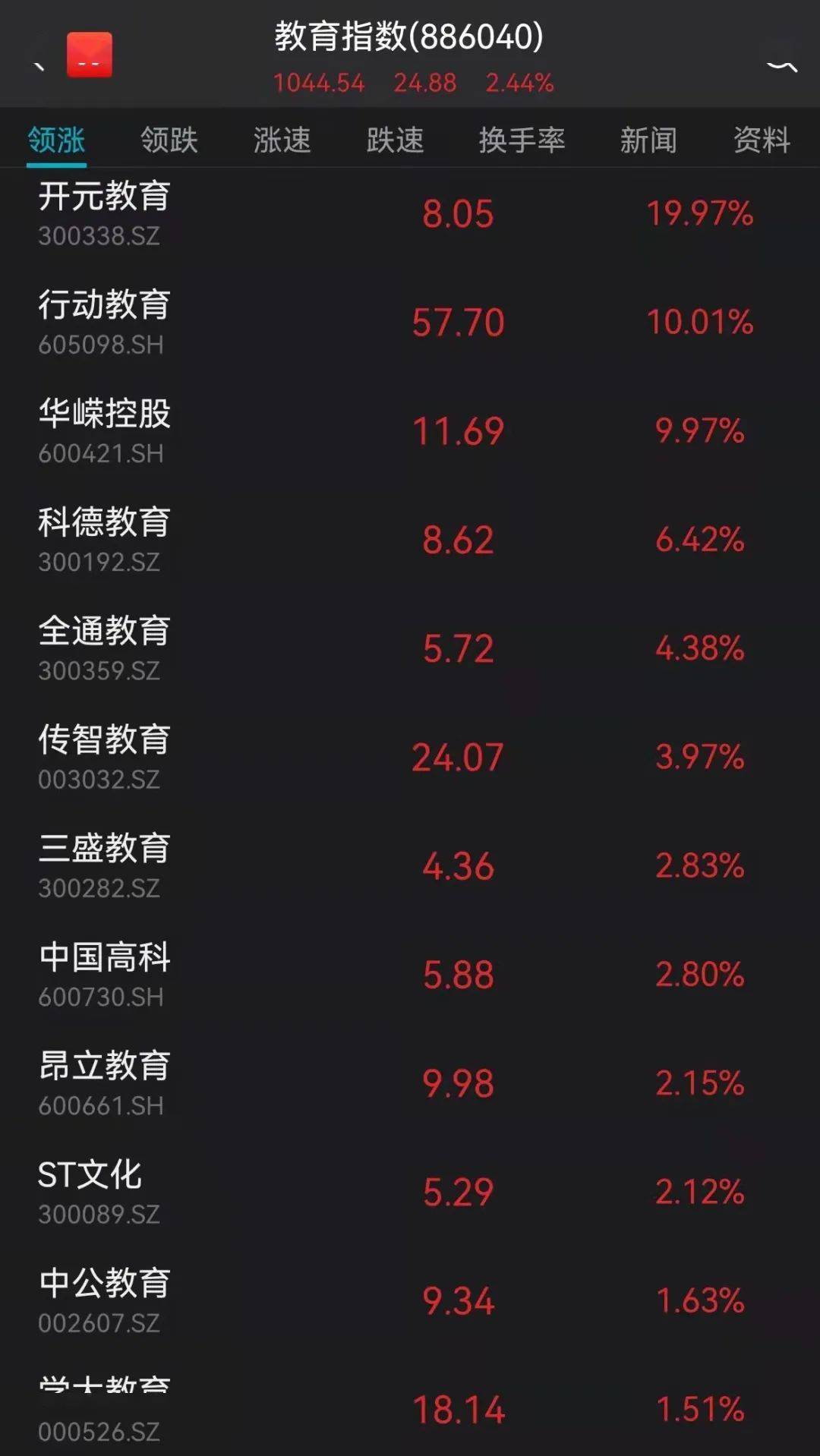 受此消息刺激,开元教育再度20CM涨停,行动教育、传智教育等多只教育个股跟涨。