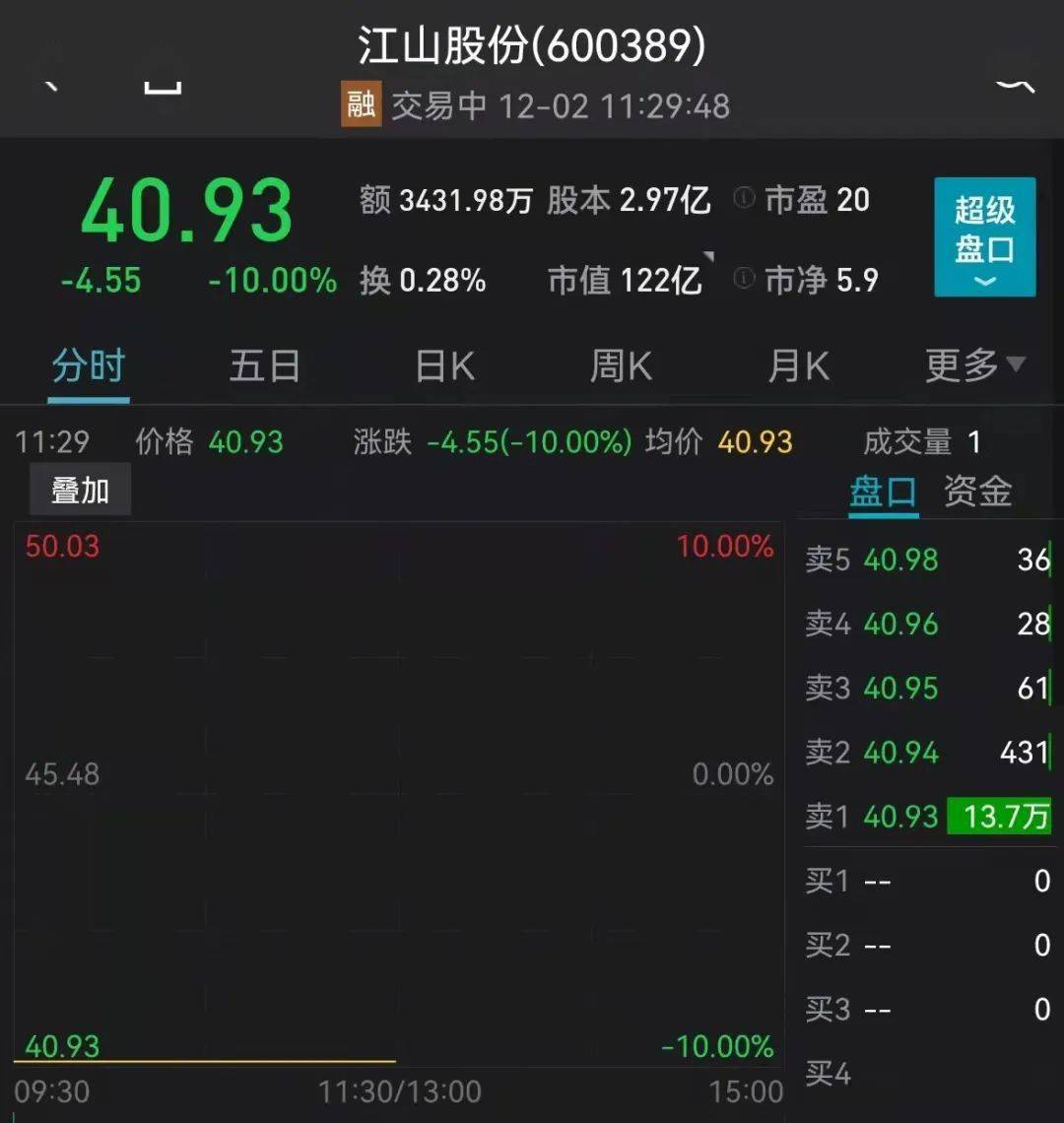 12月2日早盘,因为重组预期,股价已经翻倍的江山股份突然一字跌停。