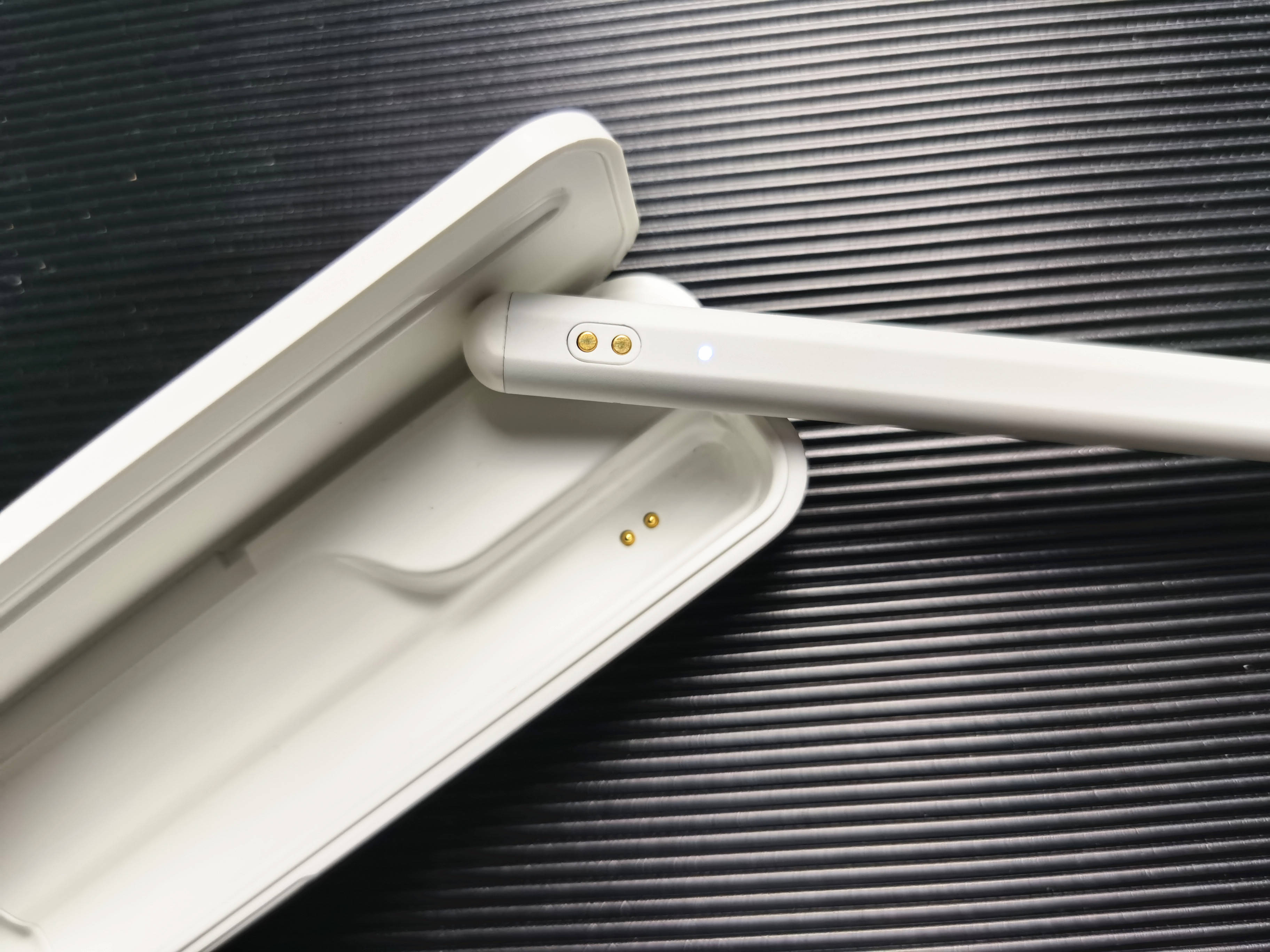 前边提到,笔盒便是充电仓,电容笔放在充电仓做到磁吸充电方式。电容笔充满电单次需要1个小时,满电可使用20个小时左右。再搭配充电仓可以给电容笔反复充满3次。使得总续航到达60小时。