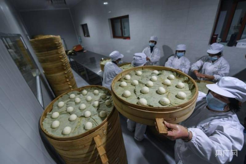 桐庐县仁智村的馒头产业园内的工作人员正在制作馒头(央广网发 通讯员供图)