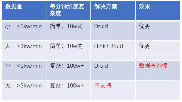 - 简单的维度组合+小的数据量,可以用 Druid 直接解决。