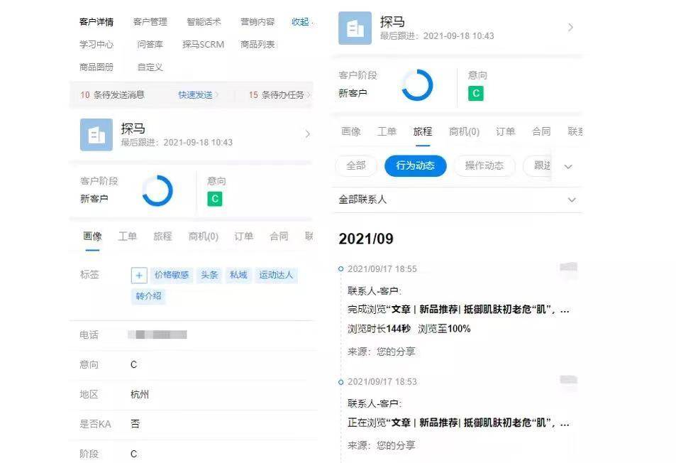 探马的【企微侧边栏】具有客户详情、智能话术、营销内容等多个功能模块,销售可以在企微侧边栏中,快速查看客户的基本信息、查找话术、给客户打电话德甲狼堡app体育下载安装等等,提升客户沟通效率。